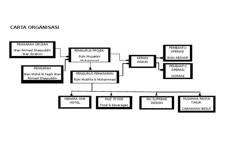 Carta organisasi dibuat untuk memperlihatkan hierarki dan tanggungjawab secara grafik untuk setiap ahli dalam sebuah syarikat. Muat turun carta organisasi wasiyyah shoppe berhad. Siti aminah bte hashim timah bte salleh. Fine consultant adalah sebuah gerakan perunding latihan 100% milik bumiputra yang ditubuhkan untuk terlibat secara langsung dalam sektor p. Laman utama > mengenai kami > carta organisasi. Ramly came up with it) and are sold almost in all neighbourhoods as it is a successful franchise chain. Ramly food processing sdn bhd, menjalankan perniagaan sebagai burger ramly merupakan produk bumiputera milik ramly bin mokni yang telah menjadi salah satu makanan segera yang popular di malaysia. No 23 kampung sri merlong, rengit, 83100 batu pahat johor. Pengarah urusan @pengurus pemasaran:thurgadewi karthikasu pengurus jualan:siti rahmah binti abdul rashid pengurus operasi@pengurus kewangan:vishvabharathi rattinam. Kamal ezwan bin abu talib. Muhammad farid bn zulkifli pembantu syarikat; Dikemaskini pada 18 disember 2020. Perkara pertama yang perlu anda buat ketika membuat carta organisasi sebuah syarikat adalah jika anda ingin menggariskannya secara mendatar atau menegak.